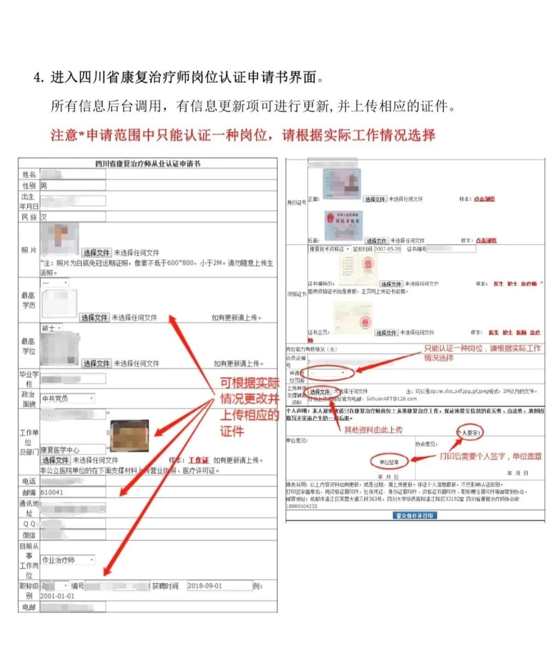 二、认证内容为:岗位类别(康复治疗师、物理治疗师、作业治疗师、语言治疗师、心理康复治疗师、假肢矫形师等),岗位级别(初士级、初师级、主管级、副主任级、主任级,资格/职称),从业范围(康复治疗、物理治疗、作业治疗、语言治疗、心理康复治疗、假肢矫形治疗等),从业地点(四川省),从业单位(工作单位)。