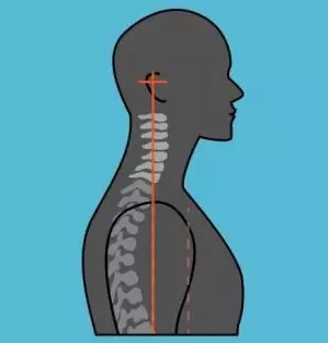 坐好并侧面对着小伙伴,小伙伴以你的耳垂最低点做一条垂线,看看垂线落在我们肩部的什么位置上。