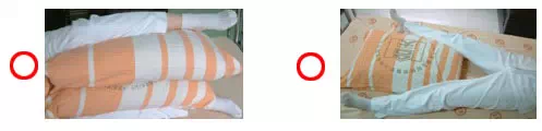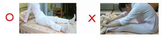 1.平躺在床时需维持髋关节外展姿势,也就是将一枕头平放于二腿之间,当翻身侧卧时亦需注意维持二腿间的距离,约放置两颗枕头的高度,以维持髋关节外展姿势。