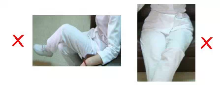 所有会使髋关节内收或髋关节屈曲超过90度的姿势都是禁忌的姿势,为避免不当姿势导致髋关节脱臼的风险,在日常生活中须特别注意以下限制。