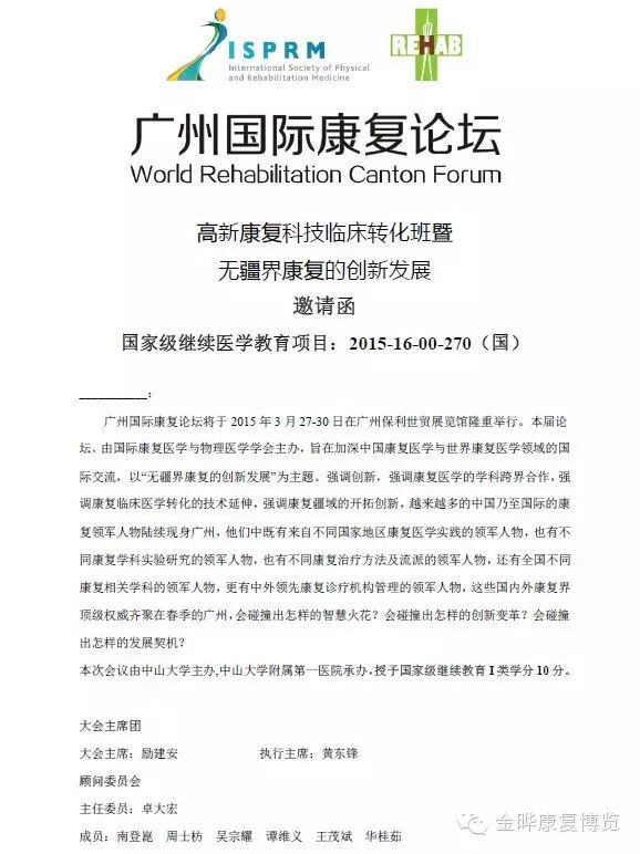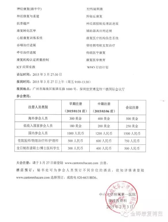 广州国际康复论坛继教科通知(中期注册将在2015/3/6前截止)