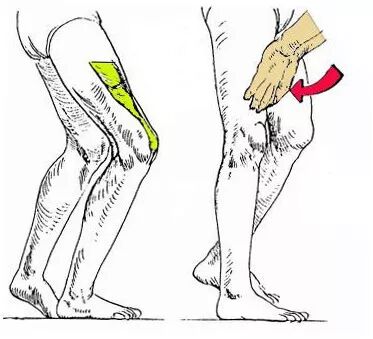 股四头肌步态—— 患者身体前倾,让重力线在膝前方通过,使膝被动伸直,患者在支撑期常俯身用手按压大腿,以便使膝伸直。