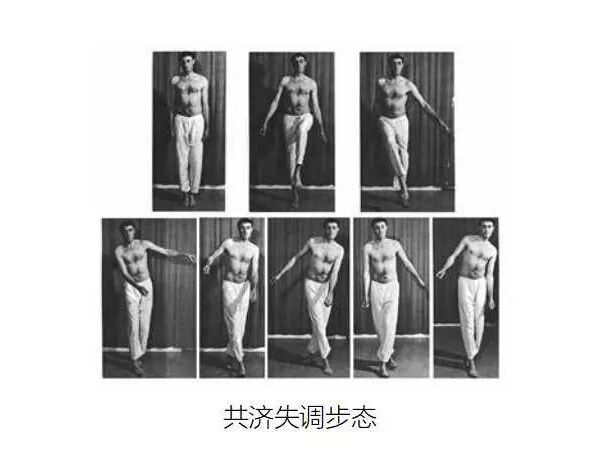 表现:上身向患侧弯曲,重力线通过髋关节的外侧,依靠内收肌来保持侧方稳定,并防止对侧髋下沉,带动对侧下肢摆动。