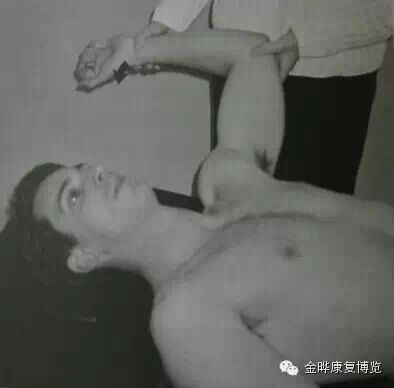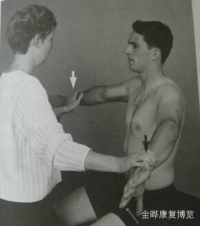 空罐头试验(empty can ):患者上肢外展90°,水平内收30度,拇指向下,检查者施力抵抗外展。