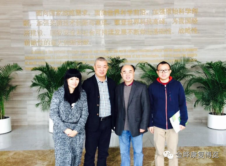 左起分别为:“金晔康复博览小编Christy,中国康复设备展组委会负责人雷静、医工所副所长李光林博士、医工所研究员方鹏博士